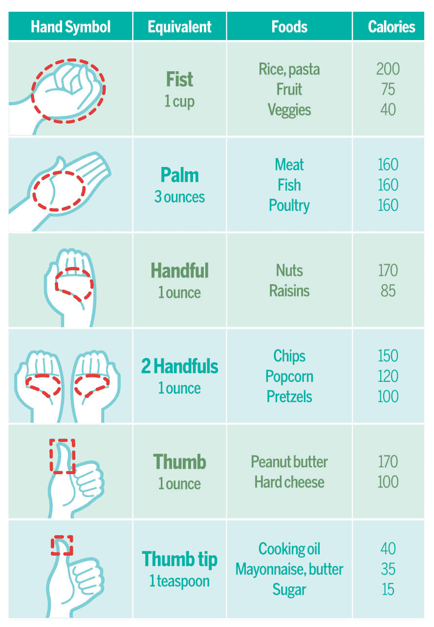 1 serving lean protein= palm of your hand